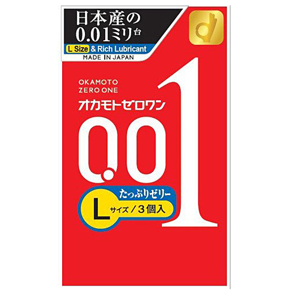 HOME> コンドーム > 薄い・厚い > 【オカモト史上最薄0.01】オカモト ゼロワン (Lサイズ たっぷりゼリー) 3個入
